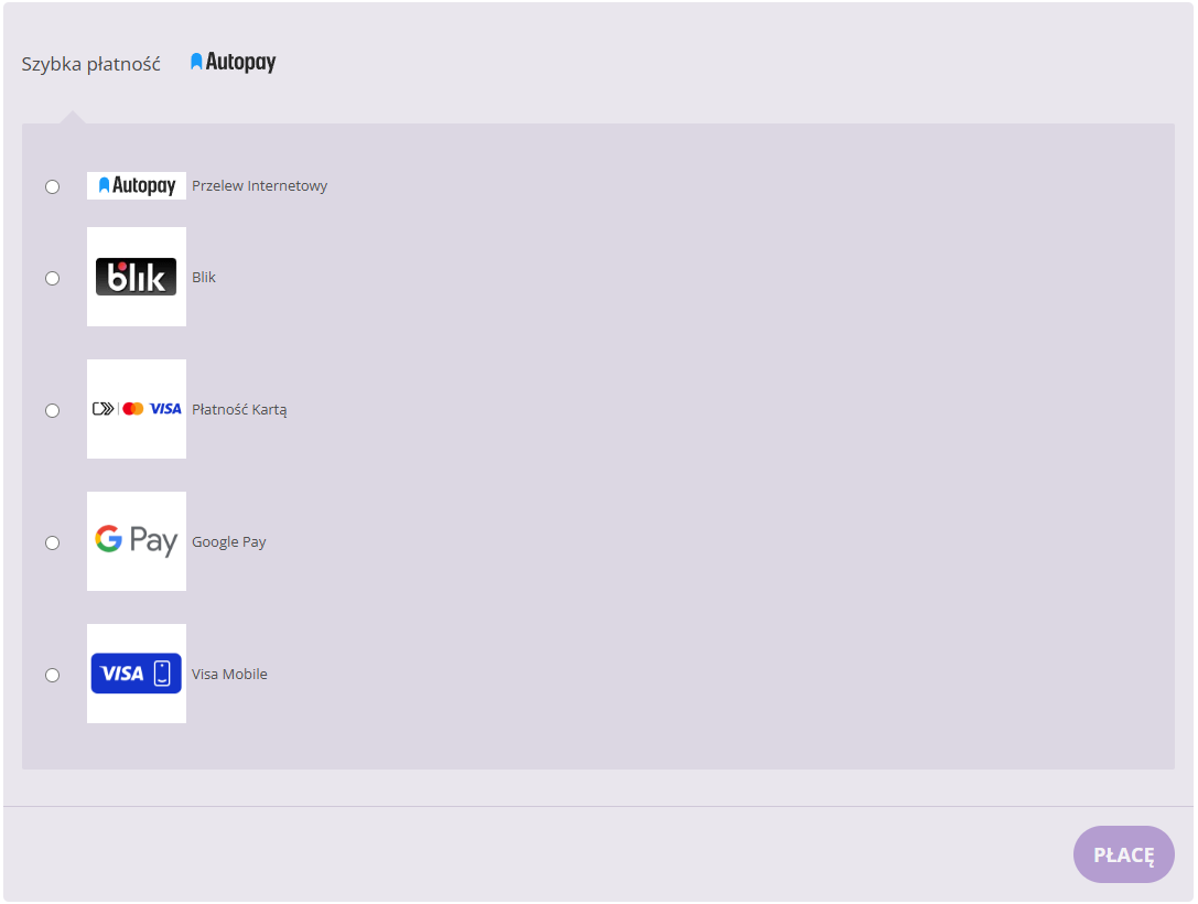 Na tym etapie użytkownik wybiera, jak chce zapłacić: